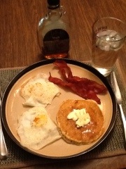 When you want dinner in a hurry – bacon, eggs, and pancakes are a great option. Eggs are, of course, naturally gluten free. Frying up eggs are my husbands expertise, but he loves using an electric skillet to cook all the eggs at once. He uses Pam Original cooking spray to prevent them from sticking to the skillet. I have yet to find a bacon that is not gluten free- but please scrutinize all the package labels because they always use additives of some sort. We just fry the bacon on the stove in a pan.