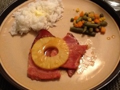 Sweeten up you ham steak with this delicious pineapple glaze. I used leftover ham from a large spiral ham I had previously made. Serve with white rice made on the stove top and topped with butter. Round out the meal with a frozen or canned veggie of your choice.