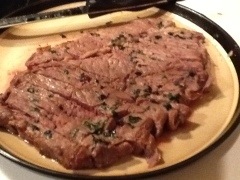 Slice thinly and serve with A1 Sauce.