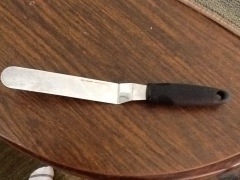 We love pizza! We have tried two pizza doughs, Pamela’s and Bob’s Red Mill. We tend to prefer Bob’s Red Mill because it is cheaper and makes more dough. We have found it best to make a fairly thin crust and make two pizzas with one package. It is really challenging to spread out the dough – I find using a cake frosting spatula (pictured below) continually dipped in a tall glass of water keeps it from sticking. We use Hormel Pepperoni and other on hand toppings. I also always cook pizza (and many other things) on my Pampered Chef pizza stone. I LOVE my pizza stone!