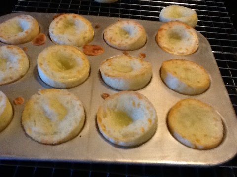 Preheat oven to 400*. Combine all ingredients in your mixer. Mix for several minutes or until batter is watery and complete mixed together. Coat 2 mini muffin tins with GF cooking spray. Place one tablespoon of batter in each space. Bake for about ten minutes or until the top of the rolls are very lightly browned. Cool on a wire rack for a few minutes.